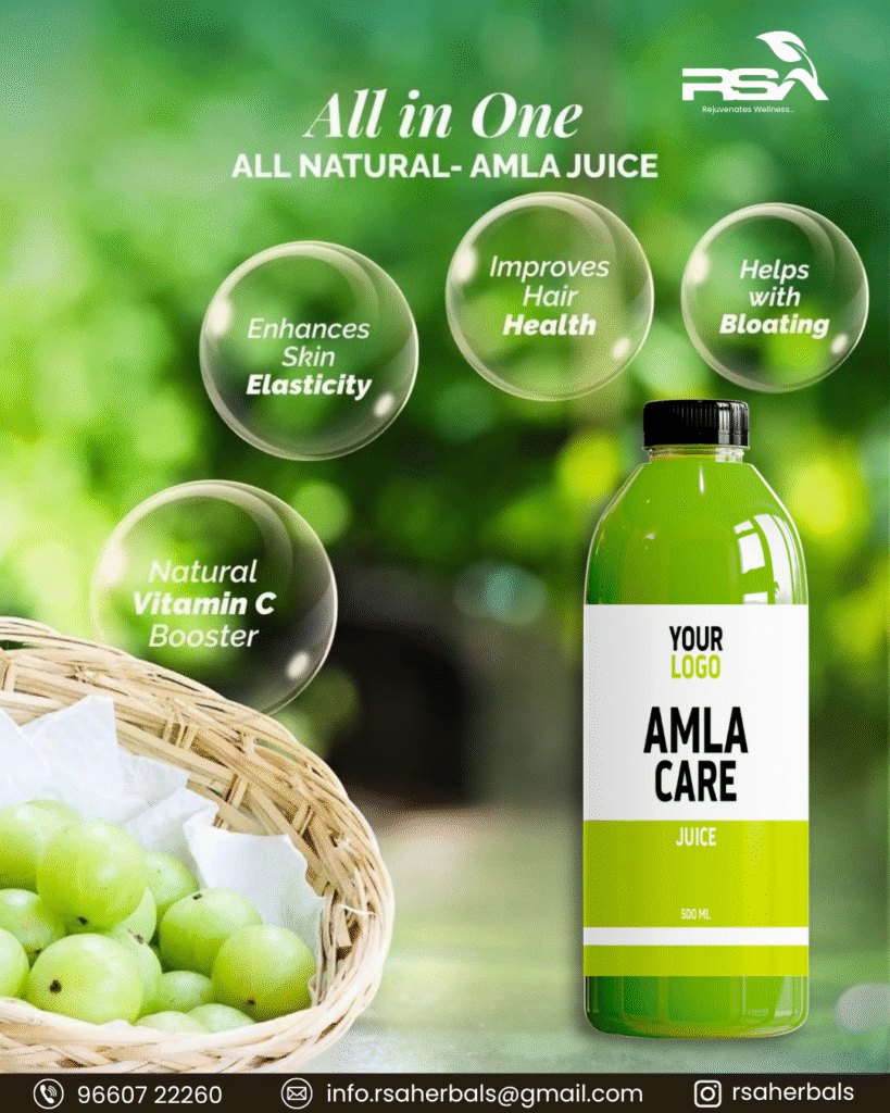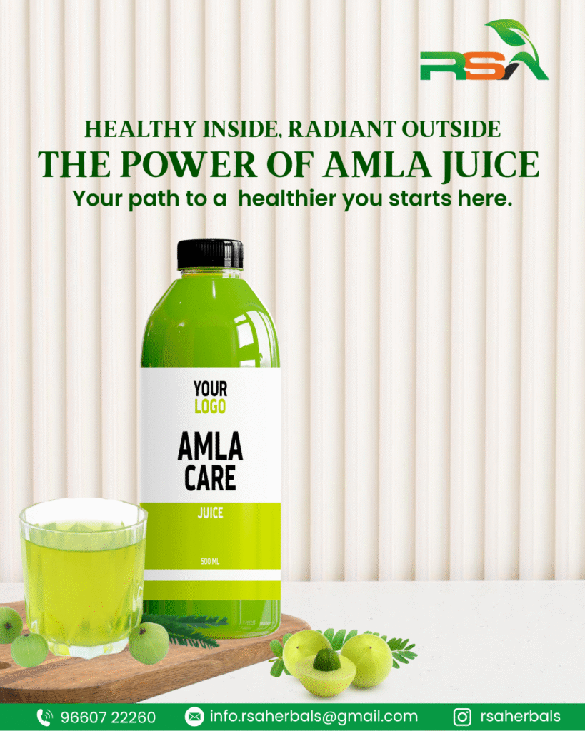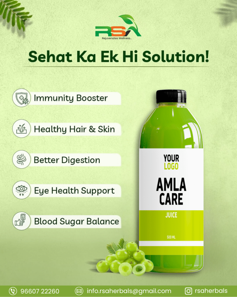 RSA Herbals is a trusted Amla juice third party manufacturer in India, offering private label, white label, and export-ready Ayurvedic juice solutions.