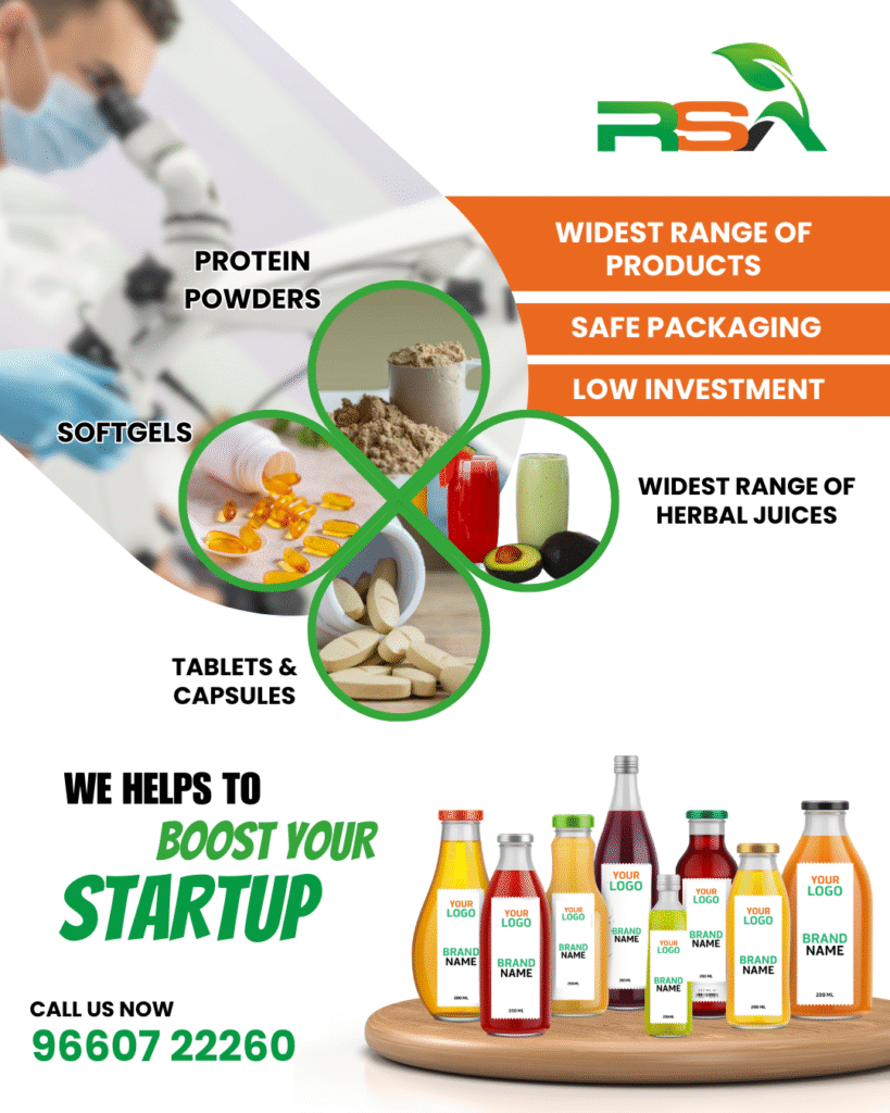 If you are looking for the best herbal juice manufacturer in India, RSA Herbals is your trusted partner. With expertise in third party manufacturing, private label services, certified quality, and a wide range of herbal juices, we help you build a successful brand.