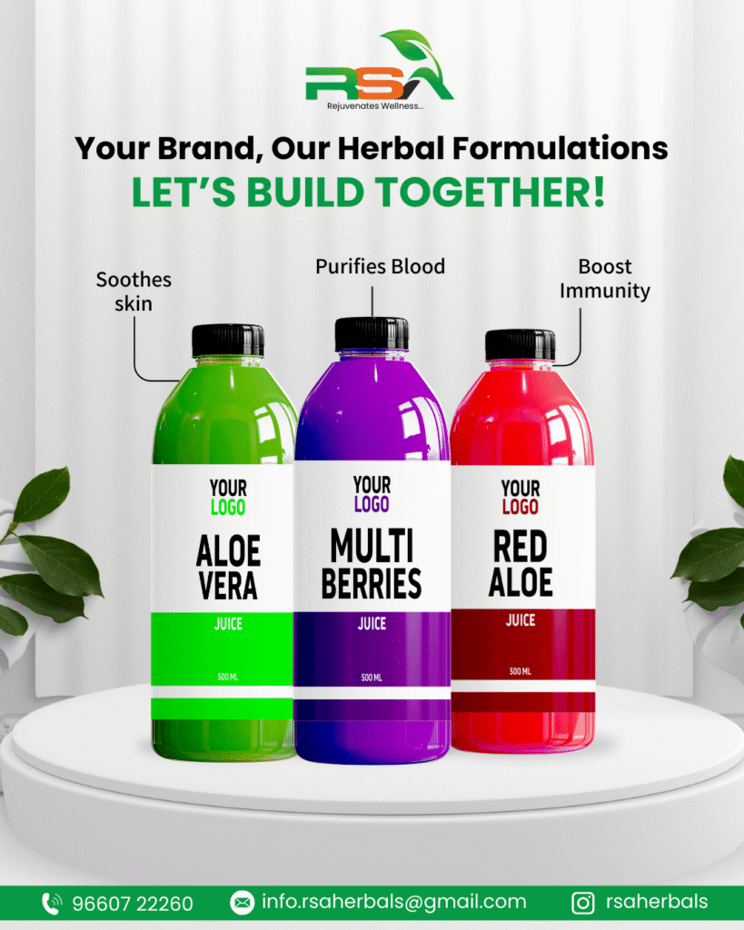 Looking for a herbal juice manufacturer in India? RSA Herbals offers premium Ayurvedic juices, private label solutions, and third party manufacturing across India with export-ready standards.